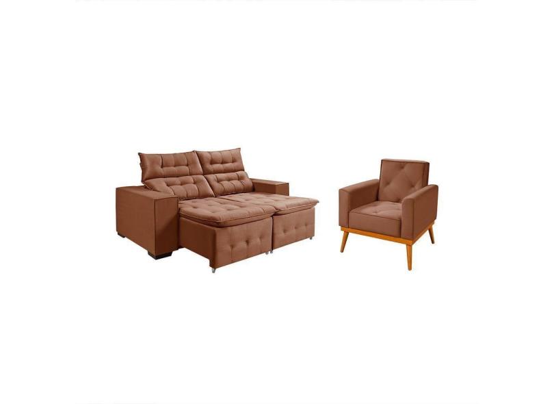 Kit Sofá Retratil Reclinável Bari 1,90 Pillow Mais Poltrona Florença Em Veludo Canela Marrom