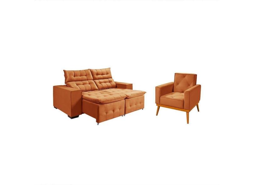 Kit Sofá Retratil Reclinável Bari 1,90 Pillow Mais Poltrona Florença Em Veludo Terracota Laranja