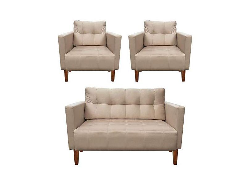 Kit Sofá Retrô Namoradeira 2 Lugares e 02 Poltronas Livia Suede Bege - D'Rossi