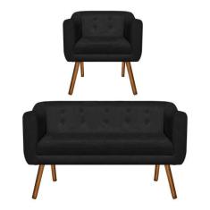Kit Sofá Retrô Namoradeira 2 Lugares e Poltrona Decorativa Julia Suede