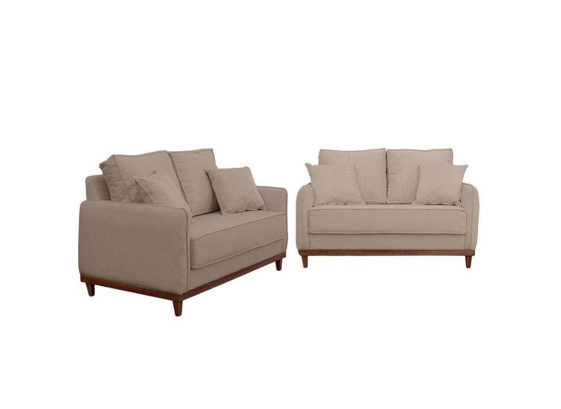 Kit Sofa Sena 2 E 3 Lugares Base De Madeira Para Sala Hotel Linho Bege