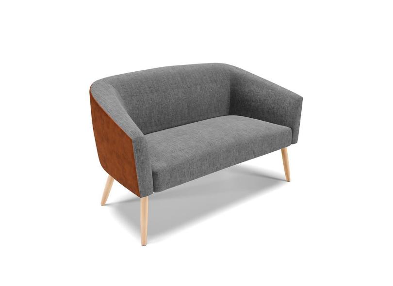 Namoradeira 02 Lugares Stella Corano Nozes com Linho Grafite A26 Pés Palito Natural - D'Rossi