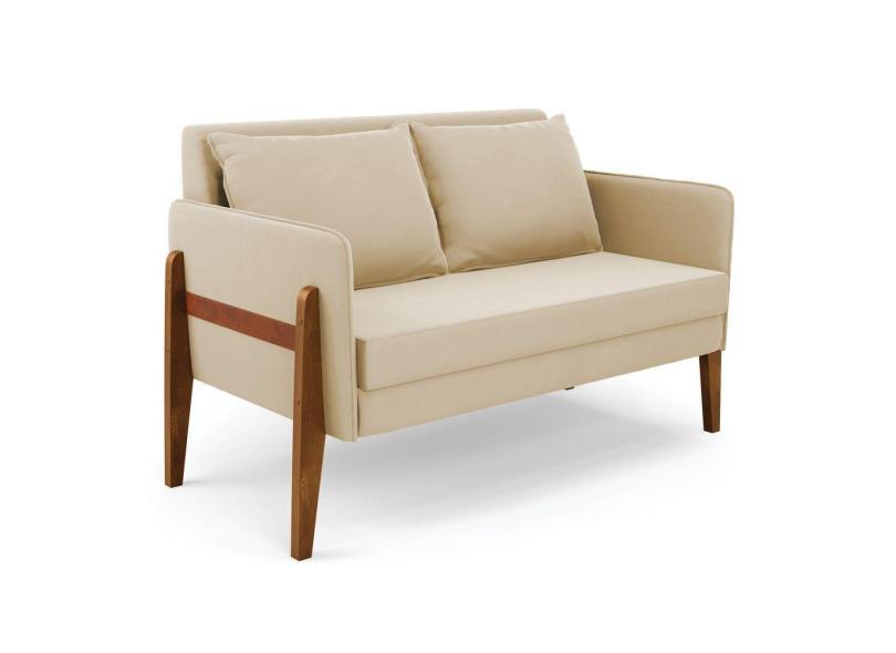 Namoradeira 2 Lugares Lana Suede Bege Base De Madeira - D'rossi