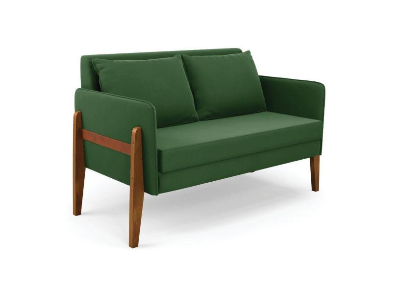 Namoradeira 2 Lugares Lana Suede Verde Base De Madeira - D'rossi