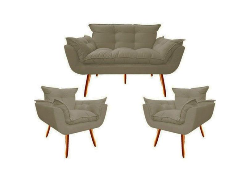 Namoradeira + 2 Poltronas Decorativa Opalla Sala de Estar Consultorio Clinica Suede Capuccino - Decor Elity