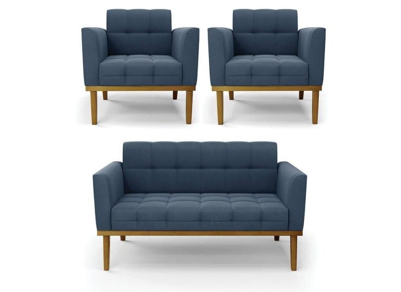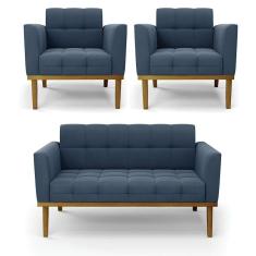 O menor preço encontrado no Brasil para Namoradeira Com 2 Poltronas Base De Madeira Castanho Elisa Suede D03 - D\`rossi Cor Azul Marinho atualmente é R$ 1.971,11.