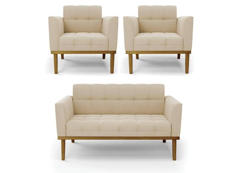 O menor preço encontrado no Brasil para Namoradeira Com 2 Poltronas Base De Madeira Castanho Elisa Suede D03 - D\`rossi Cor Bege atualmente é R$ 1.971,11.