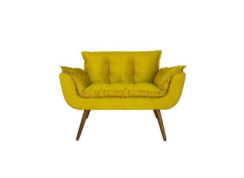 Namoradeira Decorativa Estofada Para Recepção Clínica Opala Suede Amarelo - LM DECOR