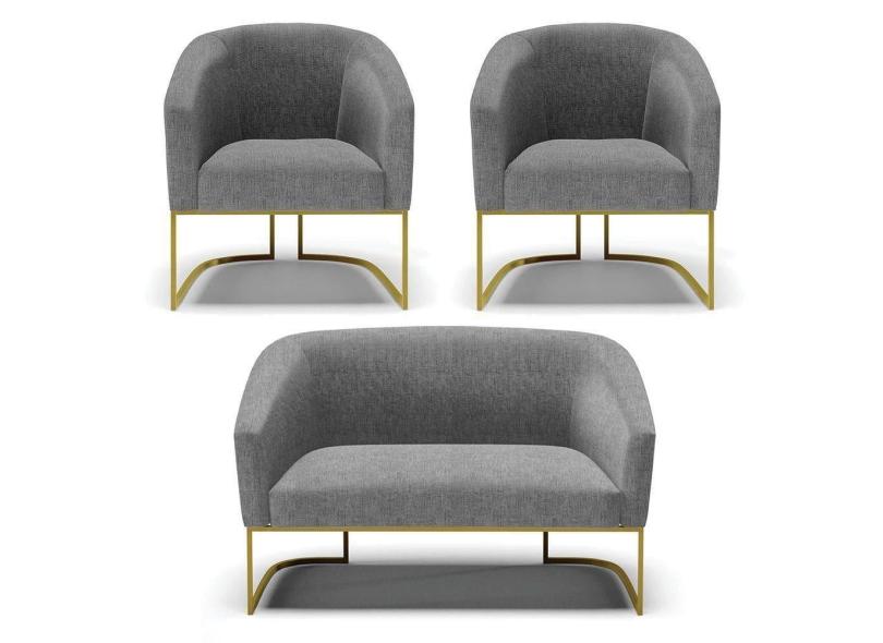 Namoradeira E 2 Poltronas Base Industrial Dourado Stella Linho D03 - D`rossi Cor A26 Grafite