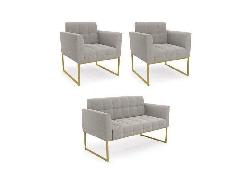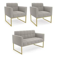 Namoradeira E 2 Poltronas Industrial Dourado Elisa Bouclê Cinza D03 -