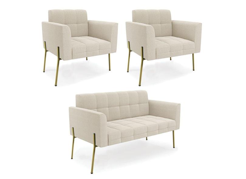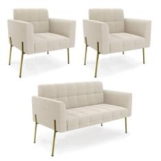 Namoradeira e 2 Poltronas Pé de Ferro Dourado Elisa Bouclê Bege D03 - D`Rossi