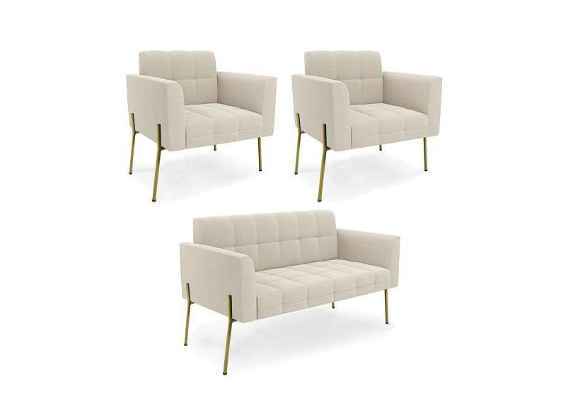 Namoradeira e 2 Poltronas Pé de Ferro Dourado Elisa Bouclê Bege D03 -