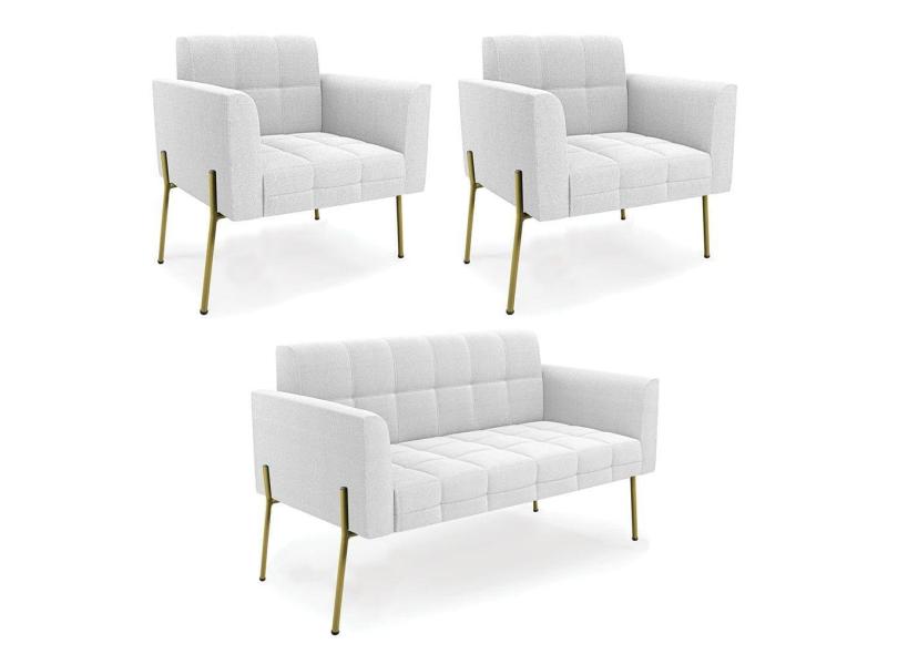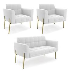 Namoradeira e 2 Poltronas Pé de Ferro Dourado Elisa Bouclê Off Wte D03 - D`Rossi