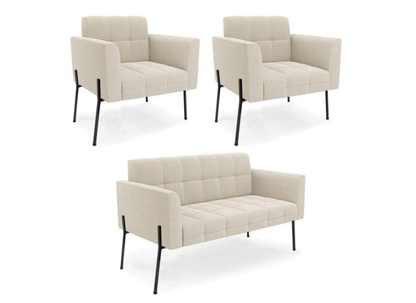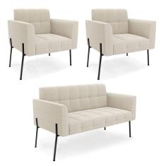 Namoradeira E 2 Poltronas Pé De Ferro Pto Elisa Bouclê Bege D03 - D`rossi