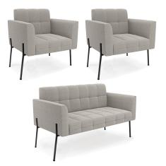 Namoradeira E 2 Poltronas Pé De Ferro Pto Elisa Bouclê Cinza D03 - D'r