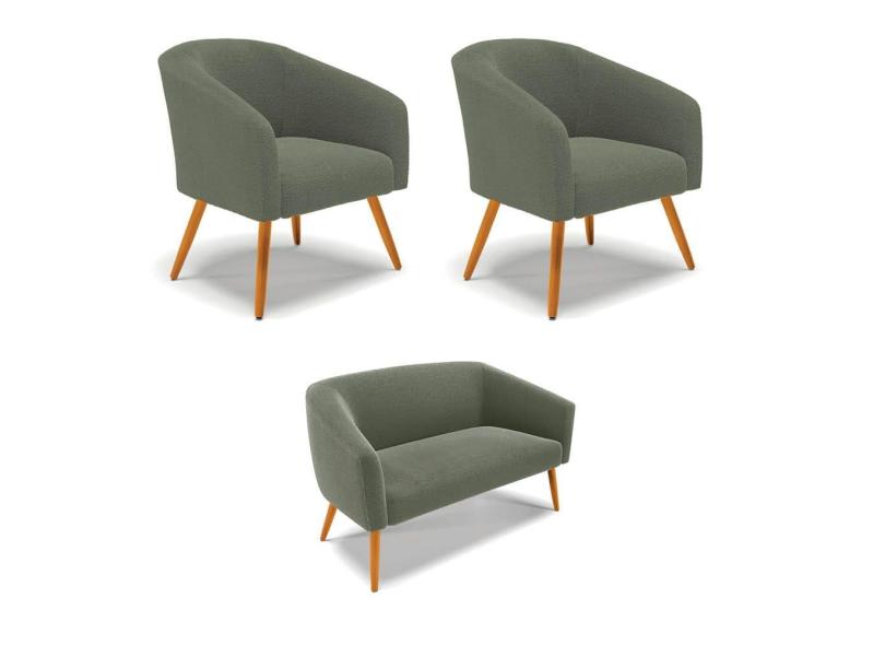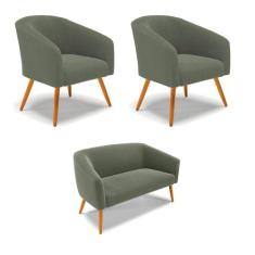 Namoradeira e 2 Poltronas Pé Palito Castanho Stella Bouclê Menta D03 - D`Rossi