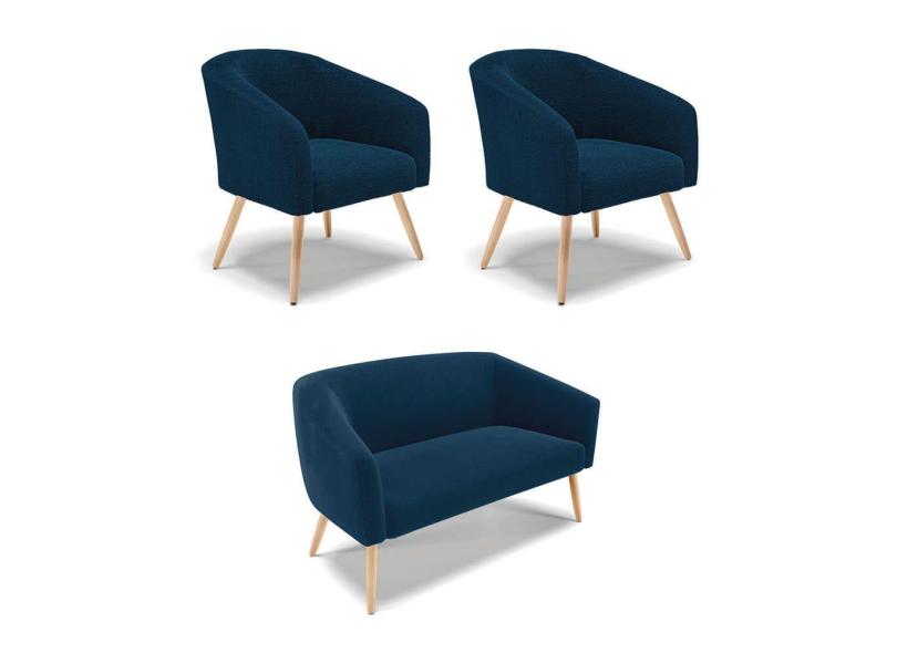 Namoradeira e 2 Poltronas Pé Palito Natural Stella Bouclê Azul D03 - D`Rossi
