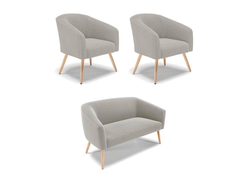 Namoradeira e 2 Poltronas Pé Palito Natural Stella Bouclê Cinza D03 - D`Rossi