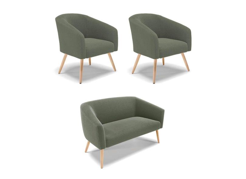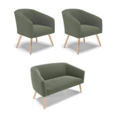Namoradeira e 2 Poltronas Pé Palito Natural Stella Bouclê Menta D03 - D`Rossi
