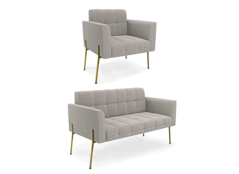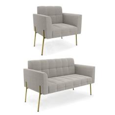 Namoradeira e Poltrona Pé de Ferro Dourado Elisa Bouclê Cinza D03 - D`Rossi