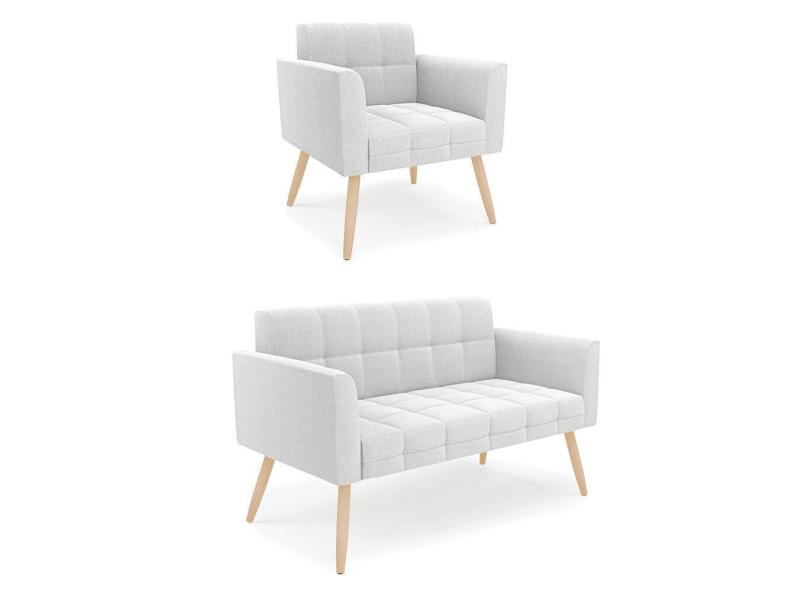 Namoradeira e Poltrona Pé Palito Natural Elisa Bouclê Off White D03 - D`Rossi