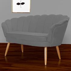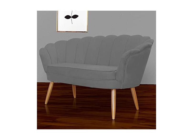 Namoradeira Estofada Pés Palito Para Sala de Estar Pétala Suede Cinza - LM DECOR