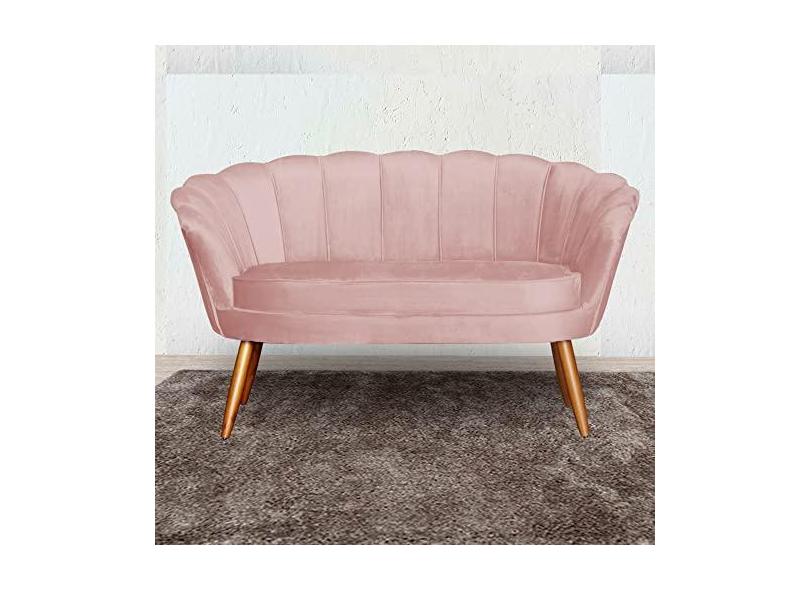 Namoradeira Estofada Pés Palito Para Sala de Estar Pétala Veludo Rosa Nude - LM DECOR