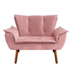Namoradeira Opala Veludo Rosê Pés Palito Castanho - D'Rossi