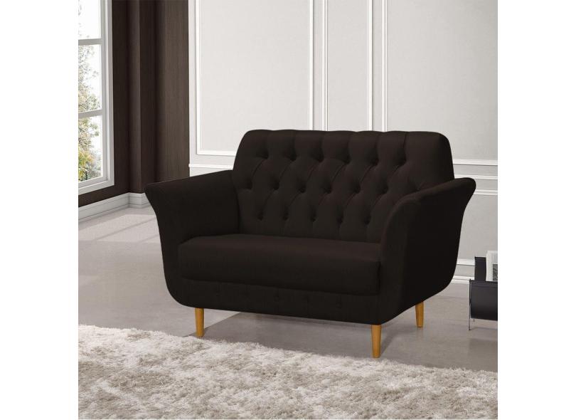 Namoradeira Pés Palito em Madeira Playa 2 Lugares Linho Marrom Escuro