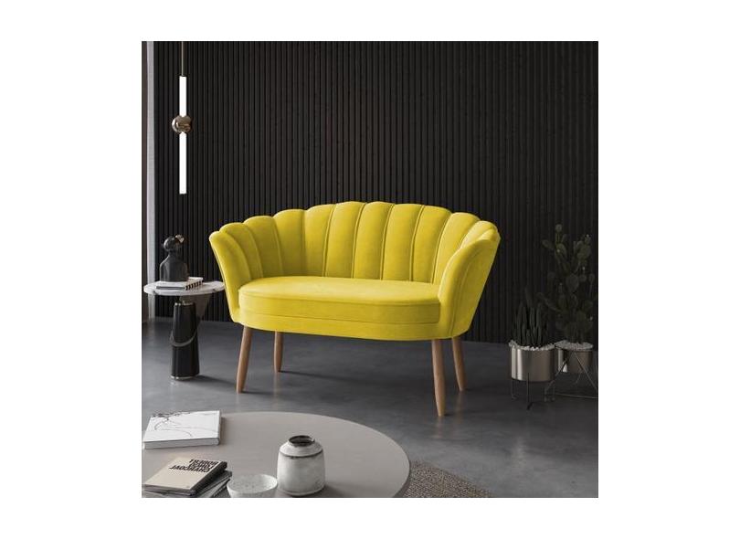 Namoradeira Sofá Pétala 2 Lugares Veludo Amarelo - Visalar