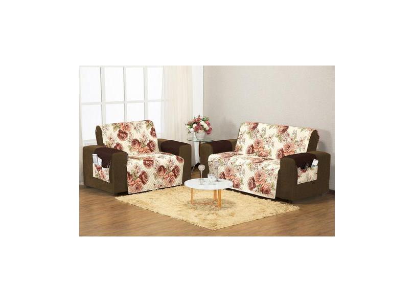 Protetor Sofa Estampado 2 E 3 Lugares - Floral Tabaco - Enxovais Aquar