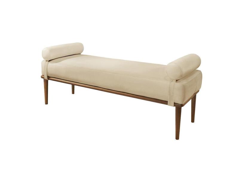 Recamier Banco Berlim Luxo Madeira Maciça Castellar Móbile Veludo Bege Claro Veludo Bege Claro