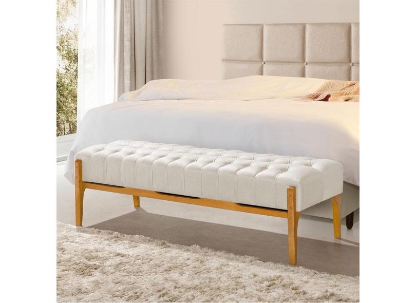 Recamier Base em Madeira Puerto 1,30m Capitonê Linho Crú