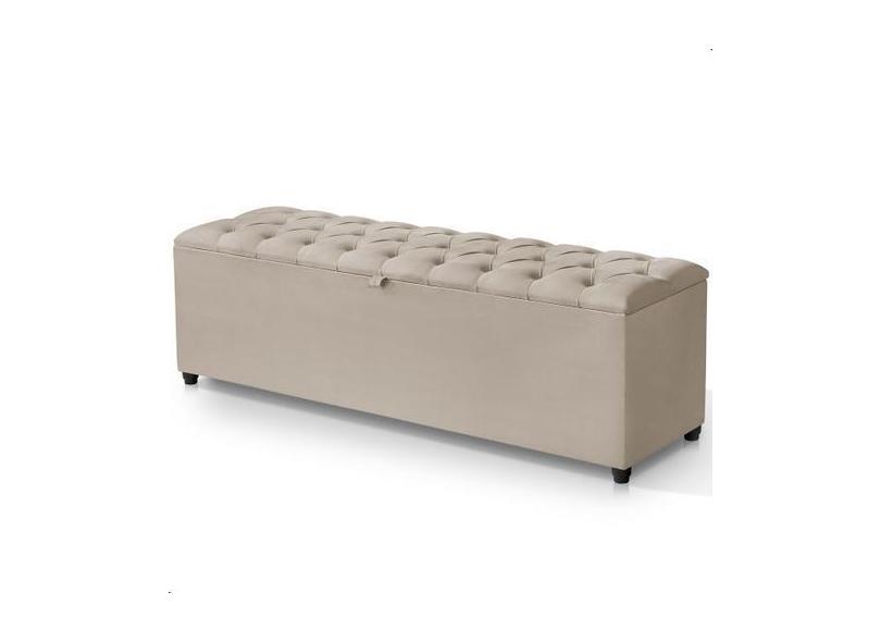 Recamier Baú Berlim Veludo Bege Queen 1,50m Estofado Pés PVC Preto - A
