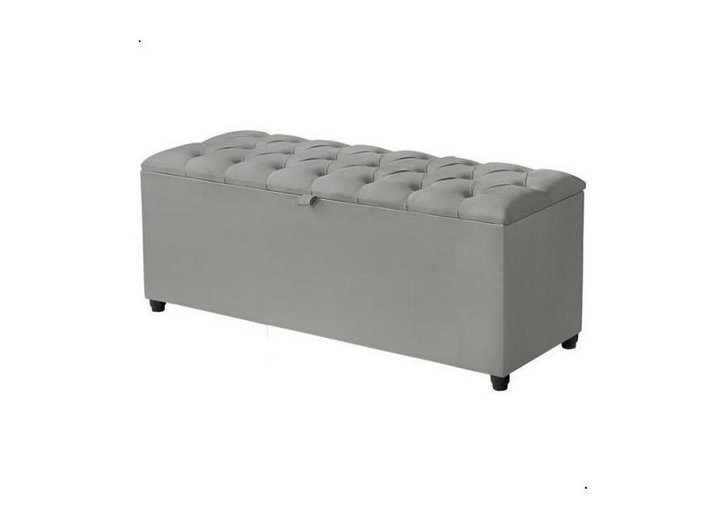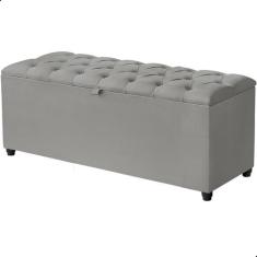 Recamier Baú Berlim Veludo Cinza Solteiro 80cm Estofado Pés Pvc Preto