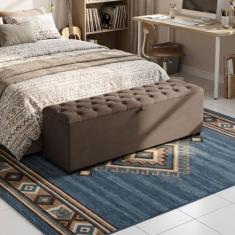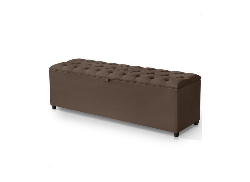 Recamier Baú Berlim Veludo Marrom Queen 1,50M Estofado Pés Pvc Preto