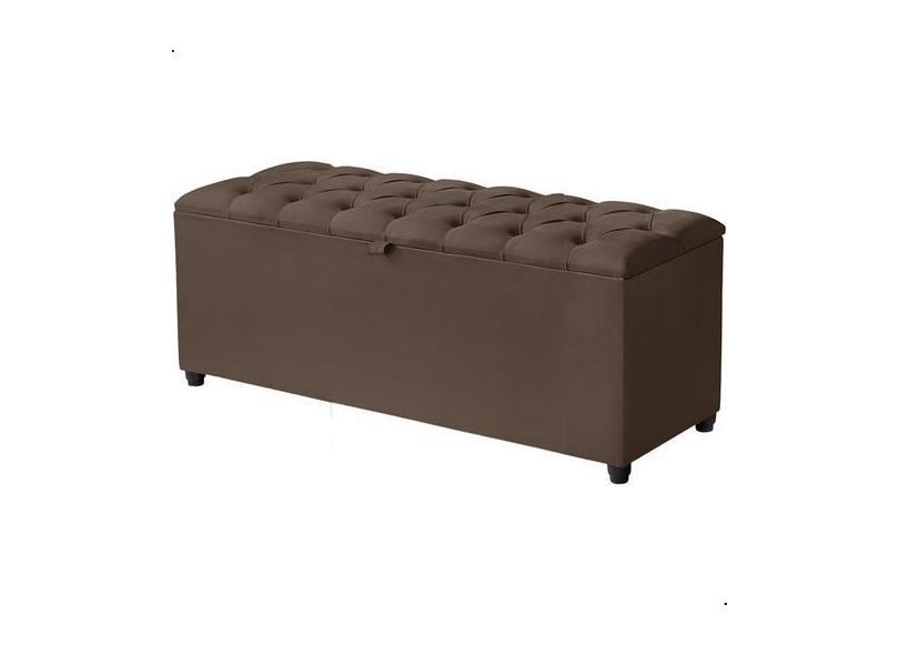 Recamier Baú Berlim Veludo Marrom Solteiro 80cm Estofado Pés Pvc Preto