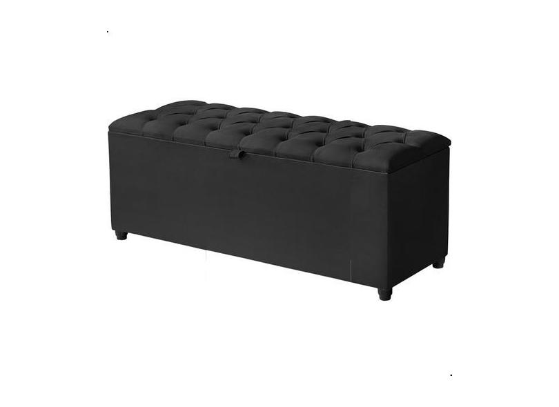 Recamier Baú Berlim Veludo Preto Solteiro 80cm Estofado Pés Pvc Preto