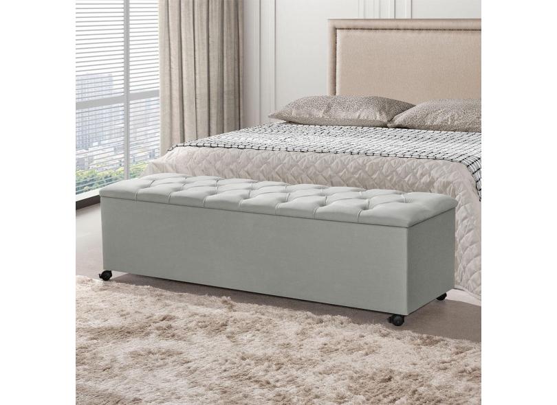 Recamier Baú com Rodízios Cancun 1,50m Veludo Cinza Claro