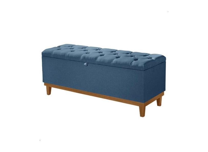 Recamier Baú Dubai Linho Azul Casal 1,30M Estofado Base Madeira - Arke