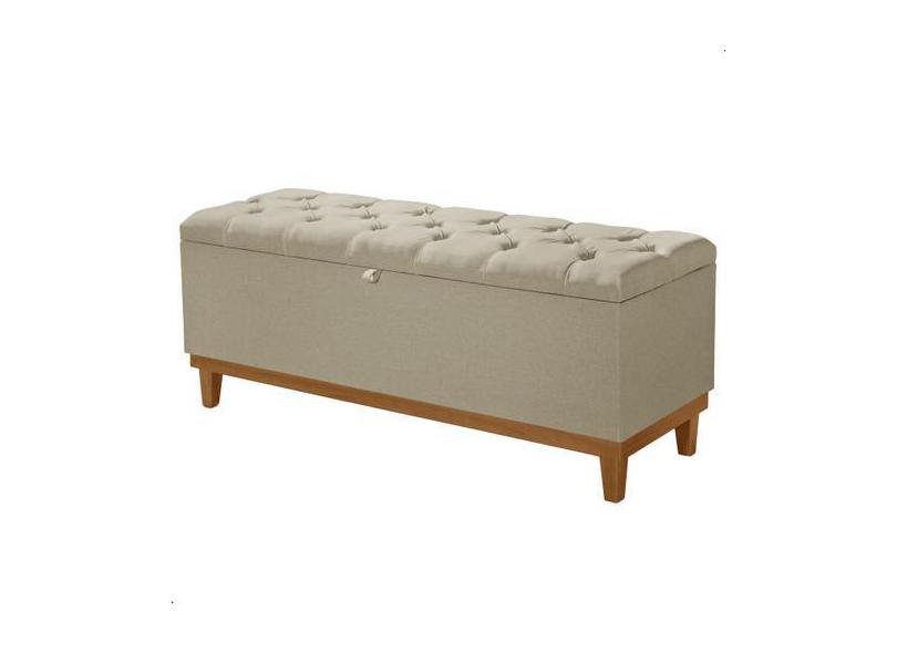 Recamier Baú Dubai Linho Bege Casal 1,30M Estofado Base Madeira - Arke