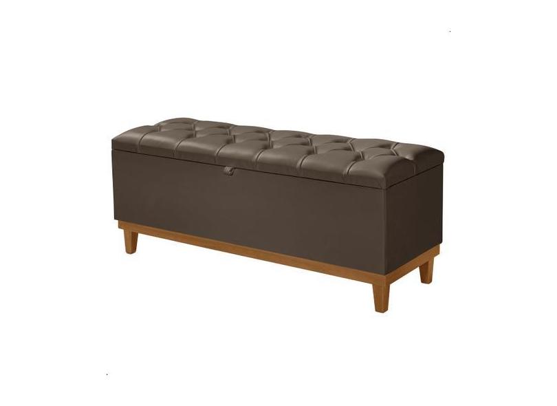 Recamier Baú Dubai material sintético Marrom Casal 1,30m Estofado Base