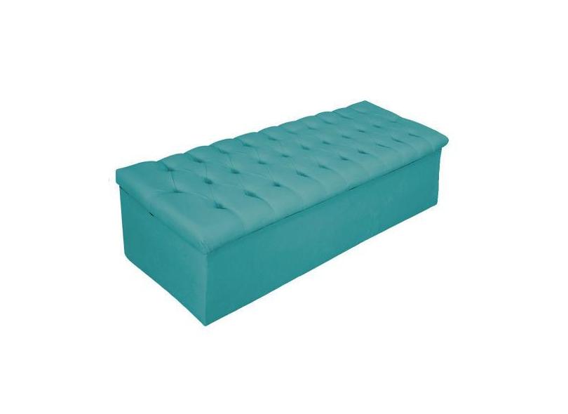 Recamier Baú Estofada Mel 140 cm Casal Com Capitonê Suede Azul Turque
