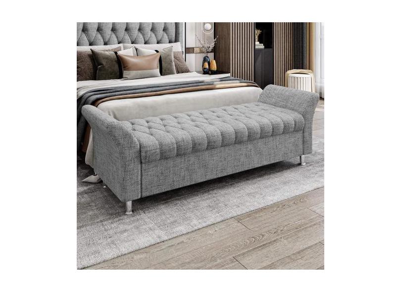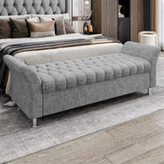 Recamier Baú King Roma em Linho - Sonhar Estofados, LN-21 Cinza