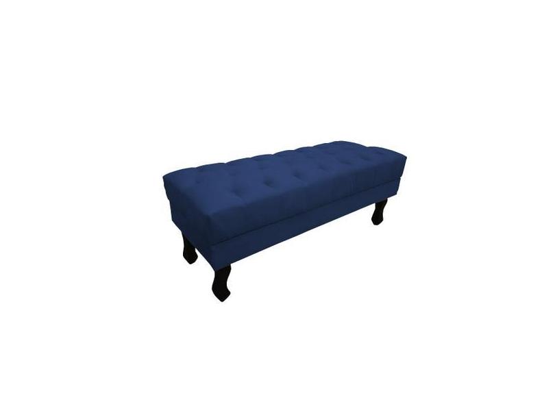 Recamier Baú Luis Xv Capitonê Retrô 100 cm Suede Azul Marinho Mz Decor