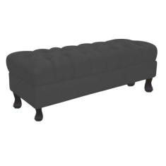 Recamier Baú Luis Xv Capitonê Retrô 160cm Suede Cinza Pés Madeira Ms D