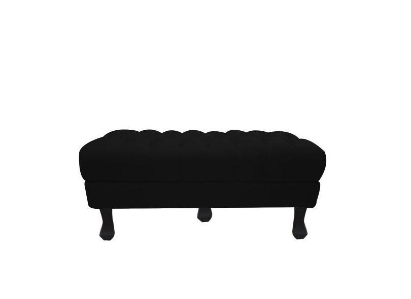 Recamier Baú Luis Xv Capitonê Retrô 180cm Suede Preto Pés Madeira Mz D