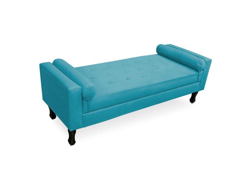 Recamier Baú Namoradeira 100cm Felix Suede Azul Turquesa - Montanaris Decor