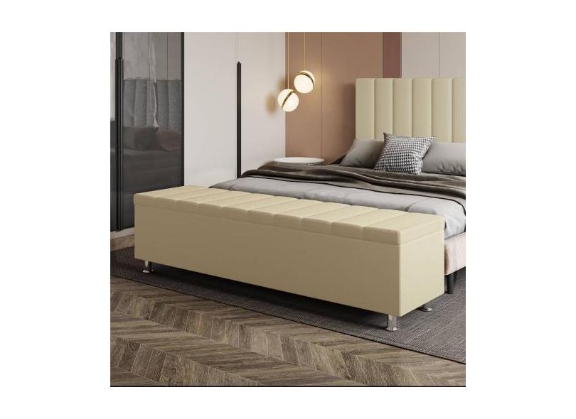 Recamier Baú Queen Itália em Linho - Sonhar Estofados, LN-22 Creme