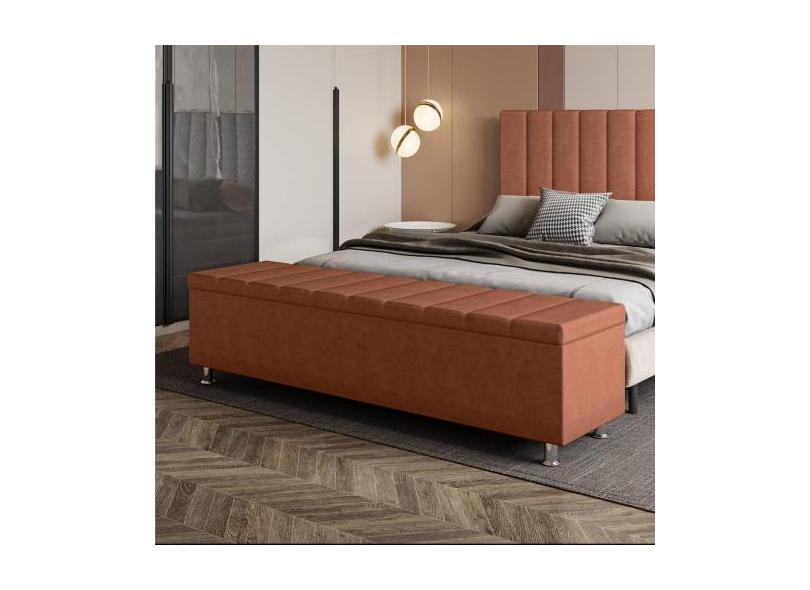 Recamier Baú Queen Itália em Veludo - Sonhar Estofados, VL-35 Terracot